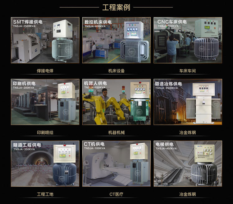用电设备正常启动和工作。特别适用于工厂、矿山、公路、铁路、隧道、桥梁、灌溉、中央空调等电压过低的场所。二、特性优点 1、可解决因用电高峰期高压电网太低(不足10KV)导致低压电网电压低( 300V-380V)设备无法正常运行。