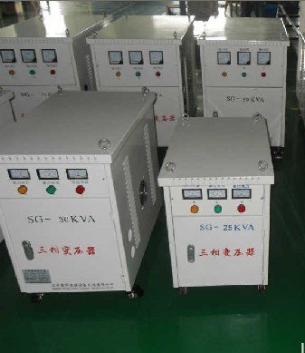 概述(低损耗型三相干式安全隔离变压器H级180℃绝缘等级): 变压器是各种电源及电气设备的主要部件,隔离变压器由圆筒式绕组和迭片式铁芯组成,铁芯采用 全新优质高硅硅钢片叠装,全斜接缝。本公司采用先进的制作工艺,有进口马克斯高速自动绕线机和全套真空压力浸漆设备;绕组采用脱胎整列绕制方法;对变压器进行真空浸漆,使变压器的绝缘等级达到F级或H级。变压器的输出和输入电压可按客户需求设计。有单相、三相或多路输入和输出等多种规格。 电力隔离变压器具有以下特点: 1. 具有电压变换功能(如:△/Yo或Yo/ △接法) 2. 有滤波抗干扰功能(如:可以去除三次谐波干扰功能。可以去除奇数次谐波干扰.) 3. 能有效地抑制从电源线引人的骚扰谐波和雷击电磁脉冲对本系统产生干扰 4. 能有效地抑制由本系统电子设备发出的骚扰谐波进入电源配电网络对其他设备(装置和系统)产生干扰 5. 能从根本上防止由于、地电位扰动所引起的系统工作失常、数据丢失或出错 6. 能有效地防止建筑物防雷装置接闪时因作为参考地的钢筋电位急剧升高导致系统中硬件设备遭反击击毁 7. 隔离变压器之所以在施工中被大量应用,其最大的原因是隔离变压器是一种1比1的变压器。初级220v,次级也是220v。我们用的交流电一根线和大地相连。另一根线与大地之间有220V的电位差。人接触会触电。隔离变压器的次级不与大地相连,它的任意两线与大地之间没有电位差。人接触任意一条线不会触电,所以比较安全。隔离变压器常用在有电子管和工作电压高的电子仪器上,如电子管扩音机,示波器等,也可用于维修电源 8. 隔离变压器在交流电源输入端的特点: a:若电网三次谐波和干扰信号比较严重,采用隔离变压器,可以去掉三次谐波和减少干扰信号。 b: 采用隔离变压器可以产生新的中性线,避免由于电网中性线不良造成设备运行不正常。 c: 非线性负载引起的电流波形畸变(如三次谐波)可被隔离而不污染电网。 9. 隔离变压器在交流电源输出端的特点: a:防止非线性负载的电流畸变影响到交流电源的正常工作及对电网产生污染,起到净化电网的作用。 b: 在隔离变压器输入端采样,使得非线性负载电流的畸变不影响取样的准确性,得到能反应实际情况的控制信号。 c: 若负载不平衡,也不影响稳压电源的正常工作。 10. 三相隔离变压器原理、结构、优点 隔离变压器采用三相双绕组结构,具有防雷击、防干扰特性。原副边每个绕组分成两个线圈,该两个线圈是用两层互相绝缘的金属箔并绕起来的。于是该两线圈之间就存在电容C(所谓容性隔离变压器)。然后可根据需要采取以下两种接线方式任意组合: ①:接在三相四线制系统一侧的绕组宜接成Z形接法。 ②: 接在三相三线制系统一侧的绕组宜接成六角形接法。