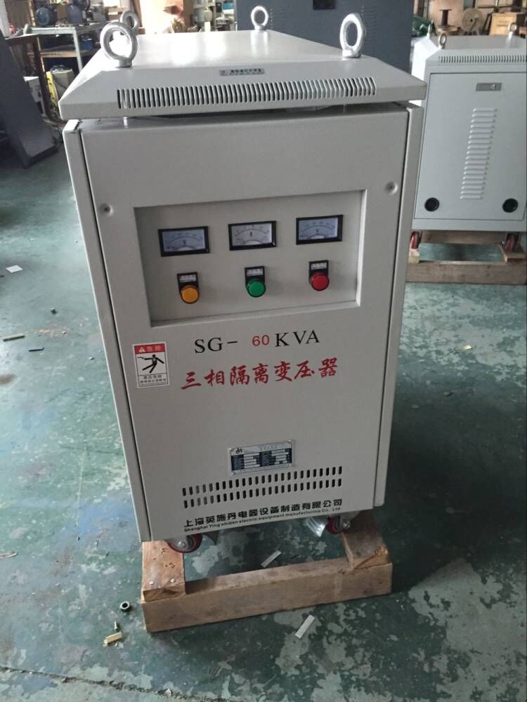 三相变压器多少钱哪里买三相变压器什么价格?三相干式隔离变压器性能参数: 1.额定容量:1kVA~2000kVA 2.联结组别:Dyn11,Yyn0 3.工频耐压:3kV/min 4.绝缘耐热等级:F,H 级 5.温升限值:铁芯不超过 85K,线圈温升不超过 95K 6.输入额定电压:三相 380V 或单相 220V 7.工作频率:50Hz-60Hz 8.效率:≥98% 9.波形畸变:<0.1% 10.绝缘电阻:绕阻对地绝缘电阻三相 ≥3.8M 欧米茄;单相 ≥2.2M 欧米茄 三相干式隔离变压器作用: 用隔离变压器建立新的中线-接地就可解除电网中共模干扰和其它中线的困扰,隔离变压器将三线△接线转换为四线 Yo 系统,加屏蔽就进一步免除了由变压器内部耦合的高频脉冲干扰和噪音,虽然有屏蔽的隔离变压器对各种 N-G 来的干扰(脉冲和高频噪声)能有效防止,但变压器必须正确妥善接地,十分严格,否则抗共模干扰将无效果。本公司为客户设计生产高质量的隔离变压器。 三相干式隔离变压器特性优点: 1.高度隔离 2.N-G 性能良好 3.高度共模干扰抑制 4.将△转换为 Y 或 Y 至△ 电压抽头容易转换 6.按用户的特殊性能要求设计 隔离变压器隔离变压器加装在稳压电源的应用 一、在电源输入端接入隔离变压器(三角/星形) 1、若电网三次谐波和干扰信号比较严重,采用△/Yo 隔离变压器,可以去掉三次谐波和减少干扰信号。 2、可以采用△/Yo 隔离变压器产生新的中性线,使设备与电网中性线无关,避免由于电网中性线不良造成设备运行不正常。 3、非线性负载引起的电流波形畸变(如三次谐波)可被隔离而不污染电网。二、在电源输出端接入隔离变压器(星形/三角) 1、防止非线性负载的电流畸变,影响到稳压电源的正常工作及反回到电网,起到净化电网的作用。 2、非线性负载电流的畸变影响取样的准确性,可以在 Yo/△隔离变压器输入端采样,得到能反应实际情况的控制信号,使稳压电源控制正常。 3、若负载不平衡,采用 Yo/△也不影响稳压电源的正常工作。 SG系列三相干式变压器、为户内空气自冷式,适用于交流50Hz/60Hz、电压1000V及1000V以下的电路中,作为各类机床、机械设备等一般电器的控制电源、局部照明及指示电源,也可作为小型动力电源用。 符合标准:Q/ZT525。 正常工作条件和安装条件 海拔不超过2000m。 最高环境温度为+40℃;最低环境温度为-5℃(极限值-25℃)当用户需要在低于-25℃环境下使用时,需在订货 时特殊指明。 大气相对湿度在周围温度为+40℃时不超过50%,在较低温度下可以有较高的相对湿度,最湿月的月平均最大相对湿度为90%,同时该月的月平均最低温度为+25℃。 环境空气中,无严重影响变压器绝缘的污秽及易爆介质,不含有腐蚀金属和破坏绝缘的有害气体或尘埃,使用中不得使变压器受到水、雨、雪的侵蚀。 安装场所无严重的振动和颠簸。 电源电压波形为实际正弦波,三相电源近似对称。 结构特点 SG系列三相干式变压器可制成开启式或防护式,具有损耗低、噪声小、防火性能好和不污染环境等 优点。其中防护式是采用钢板加工成箱壳,变压器在箱壳内部,箱壳外有进出线孔,以便安装电源线路。 另外,防护式可按用户要求增加电压电流监控仪表,80kVA及以上大容量的还可增加轴流散热风机,也 可增加转向轮以便移动。 三相变压器多少钱哪里买三相变压器什么价格?