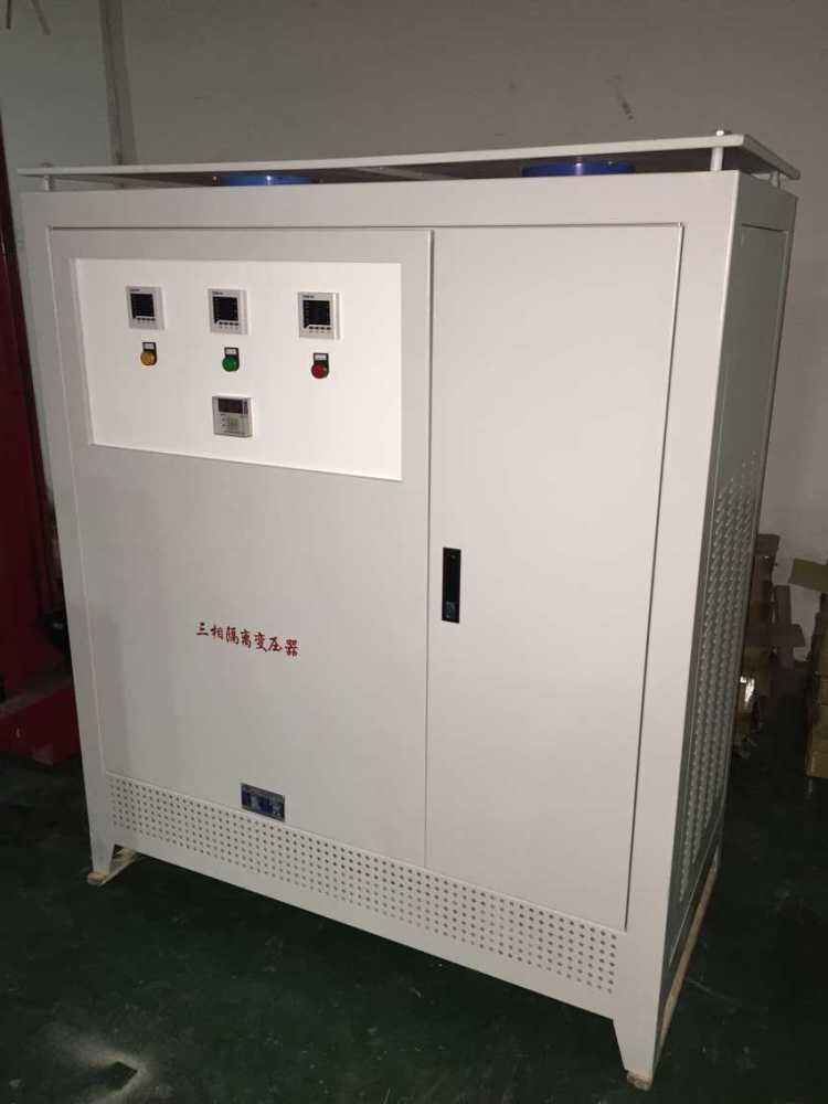 性能水平。 * 可靠性高、耐温等级高、耐热裕度大 本公司产品温升控制在100K以下,可过载20%历时5分钟。 局部放电少,控制在5pc以下。 由于NOMEX纸的介电常数为1.5-2.5,比常用的绝缘材料都低,接近空气的介电常数,整台产品绝缘系统电场分布较均匀,局放量少,且相对稳定。 具备优良的防潮性能。 变压器在正常使用情况下可免维护。 * 环保性好,噪声低,线圈可回收处理 本产品无需配置风机,铁芯采用葡萄牙绑扎技术等特殊处理工艺,进口硅钢片,采用低磁密设计方案。确保整台变压器运行噪音低于标准15dB以下。 产品在制造、运输、储存、运行时都不会造成任何环境污染。 额定容量:3φ 110KVA 输入电压: 3φ 380V(允许额定电压±10%波动) 输出电压:3φ 220V, 频 率:50HZ 联 接 组:△/Y任意组合(适用于隔离变压器) 材 料:采用全新夕钢片, 效 率:≥98% 绝缘等级:F级 过载能力:允许1.2倍额定负载2小时. 冷却方式:自然风冷 噪 声:≤45dB 空载温升:≤70°C(空载24小时) 绝缘电阻:≥5MΩ 抗电强度:3000VAC/1min 工作环镜:温度:-10~40℃ 尺 寸:350×300×300mm 质保时间:免费保修18个月,终身维护 配 置:带机壳,具有输入电压,输出电压,工作电流等指示功能 无腐蚀性气体及导电粉尘 二、适用场合 适用于各种需要变换电压等级场所以及机器设备。 三、特别事项 可根据客户需要定制特殊规格。
