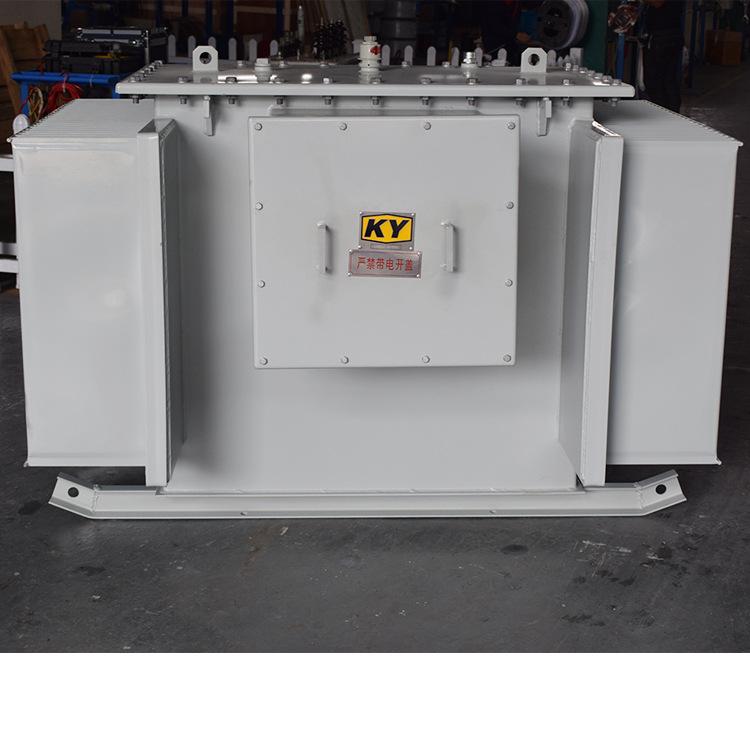 KS9-50KVA80KVA100KVA160KVA125KVAkw矿用油浸式变压器10KV/0.69KV/0.66KV/0.48KV/0.46KV/0.4KV/0.38KV/0.22KV/0.208KV/0.22KV ks9系列矿用变压器,作为矿井的配电设备,该产品具有体积小、易下井、结构合理、损耗低、散热性能好等特点。 本系列产品采用优质的晶粒取向优质高导磁性能硅钢片叠装而成,铁芯为芯式铁芯,全斜接缝迭积式铁芯,其铁芯柱为 多级圆截面,确保低噪音低损耗。油箱结构坚固,箱壁两侧焊有高、低压电缆接线盒,作为电缆接线之用,高压线圈须有额 定电压±5%的分接电压,利用分接开关变换电压。变换电压时,必须先切断电源,然后去除箱壁上分接开关的风雨罩进行变 换电压。变压器低压侧允许“y”型接成693v或“d”型接成400v供电,在电缆接线盒内直接装次级端头引出六个瓷套供用 户改接。变压器吊装利用焊在箱壁的吊攀,变压器箱底均装有拖橇,在拖撬上备有安装孔,可供矿井需要时加装矿车滚轮。 适用范围 适用于容量630kva及以下,电压为10kv及以下的油浸式矿用电力变压器。此类型矿用变 压器是一般型油浸式变压器,并无防爆要求,主要作为矿井配电时的矿用照明或电力拖动的电 源。凡本系列变压器经运输后,不需作吊心检查,即可装配有关拆卸的零部件,做验收试验项目。