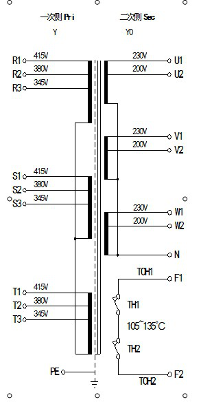 英施丹集团GSG系列三相干式变压器为SG的延伸产品,广泛应用于各类数控机床、加工中心、自动化控制、数控设备的伺服系统和主轴电机的电压变换,及控制电源之用;可与发那科、西门子、松下、三菱、华中、凯恩帝、航天等数控伺服系统、伺服电机、主轴电机匹配使用。 连接示意图