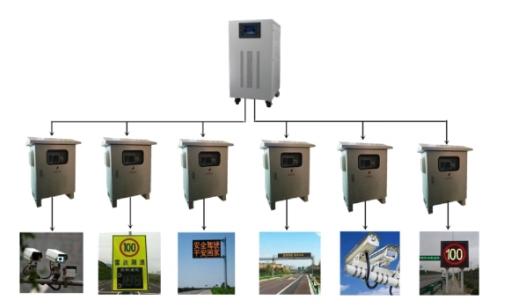 外场设备远程供电系统由电源升压设备、供电线缆和电源降压设备组成。主要用于高速公路外场摄像机、车检器和情报板等外场设备的供电使用。该设备有效解决了以下几个问题: