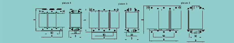 | 三相隔离变压器型号 | 图号 | 逆变器功率(KW) | 额定输出电流(A) | 三相输入电压 | 三相输出电压 | 变压器效率 | 重量 (KG) | 尺寸(mm) | | W | D | H | WO | DO | | FSG -10 -EISA -690/400 | A | 10 | 14.4 | AC690V | AC400V | 95% | 110 | 430 | 260 | 450 | 240 | 176 | | FSG -15 -EISA -690/400 | 15 | 21.7 | AC690V | AC400V | 96% | 170 | 430 | 320 | 450 | 240 | 236 | | FSG -20 -EISA -690/400 | 20 | 28.9 | AC690V | AC400V | 96.3% | 175 | 430 | 320 | 450 | 240 | 236 | | FSG -30 -EISA -690/400 | B | 30 | 43.3 | AC690V | AC400V | 96.6% | 260 | 430 | 390 | 520 | 240 | 276 | | FSG -50 -EISA -690/400 | 50 | 72.2 | AC690V | AC400V | 96.8% | 305 | 430 | 390 | 520 | 240 | 276 | | FSG -100 -EISA -690/400 | C | 100 | 144.3 | AC690V | AC400V | 97.6% | 485 | 600 | 470 | 620 | 550 | 288 | | FSG -125 -EISA -690/400 | 125 | 180.4 | AC690V | AC400V | 97.9% | 570 | 600 | 500 | 620 | 550 | 318 |